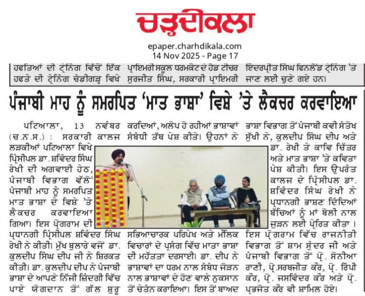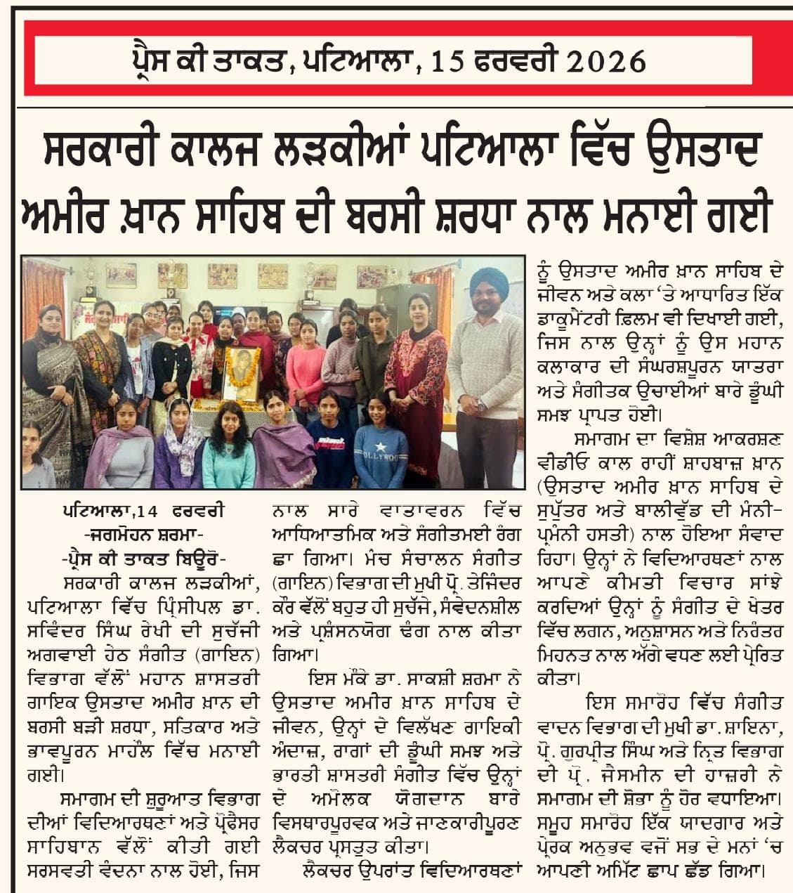 ਮਿਊਜ਼ਿਕ ਵਿਭਾਗ ਵਲੋਂ