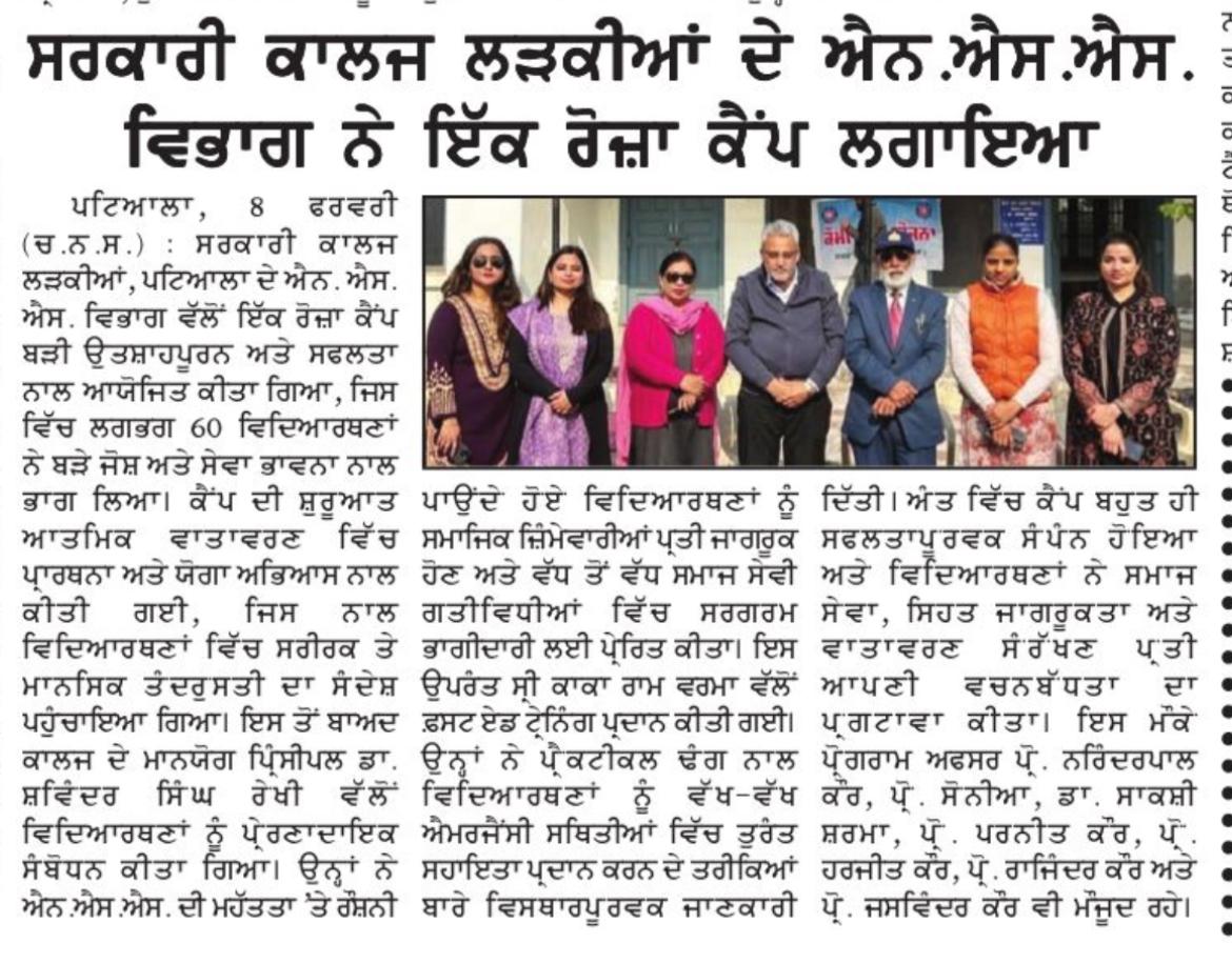 ਐਨ ਐਸ ਐਸ ਵਲੋਂ 1 ਰੋਜ਼ਾ