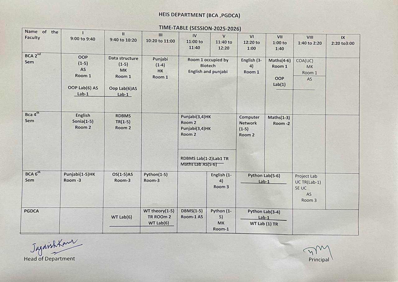 Time Table of Bsc Non Medical (Semester 2, 4, 6) |
