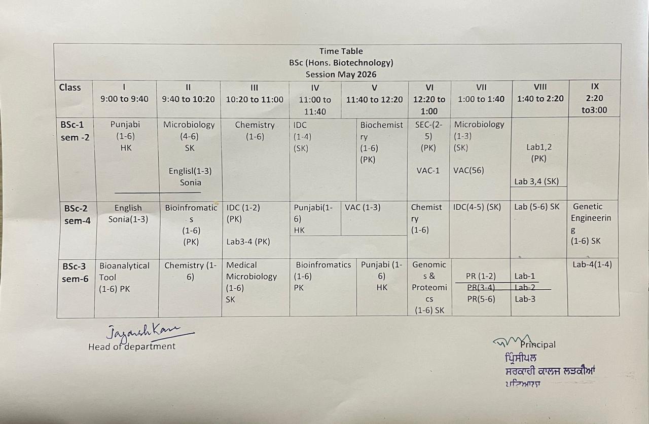 Time Table of Bsc Medical Sem 2, 4, 6 |